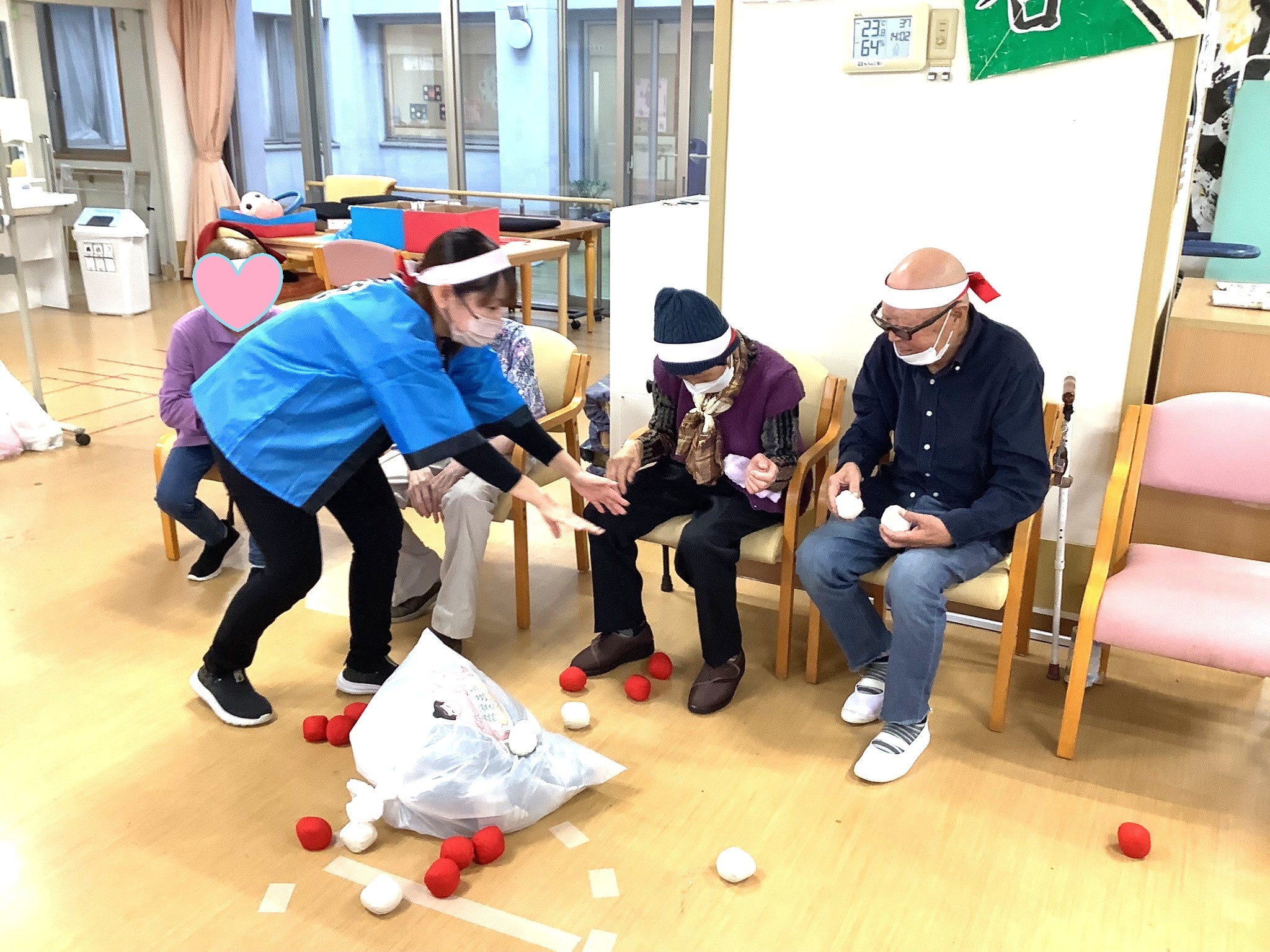 そのお相撲さんに向かって、紅白の玉をぶつけ合いました。