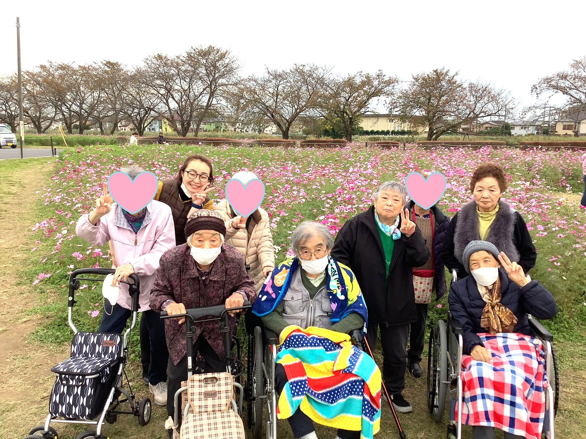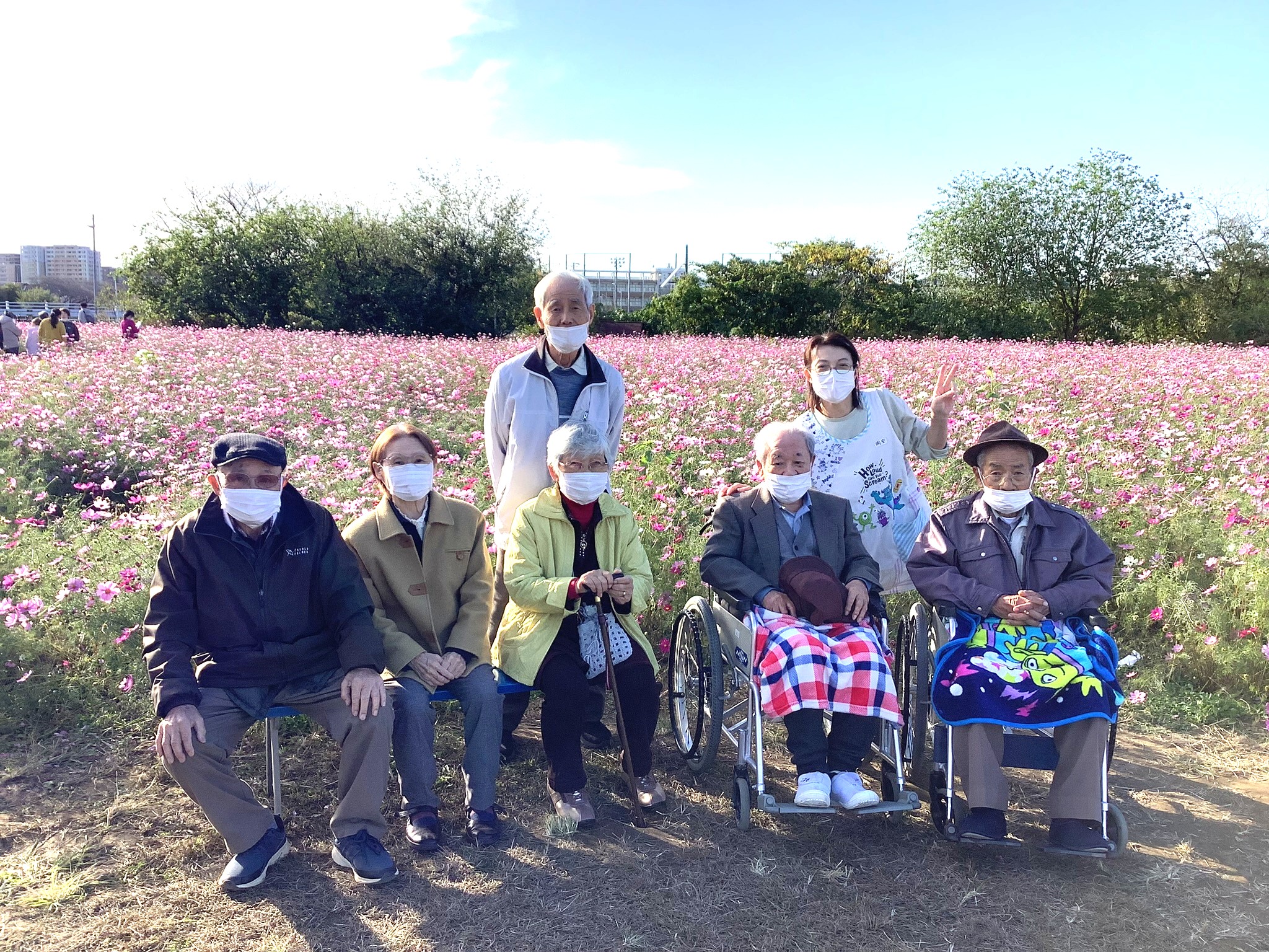 デイサービスの皆さんと一緒に、コスモス見学へ出かけました!