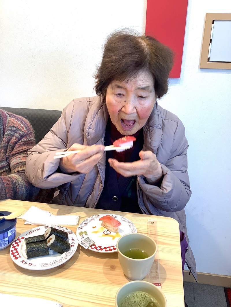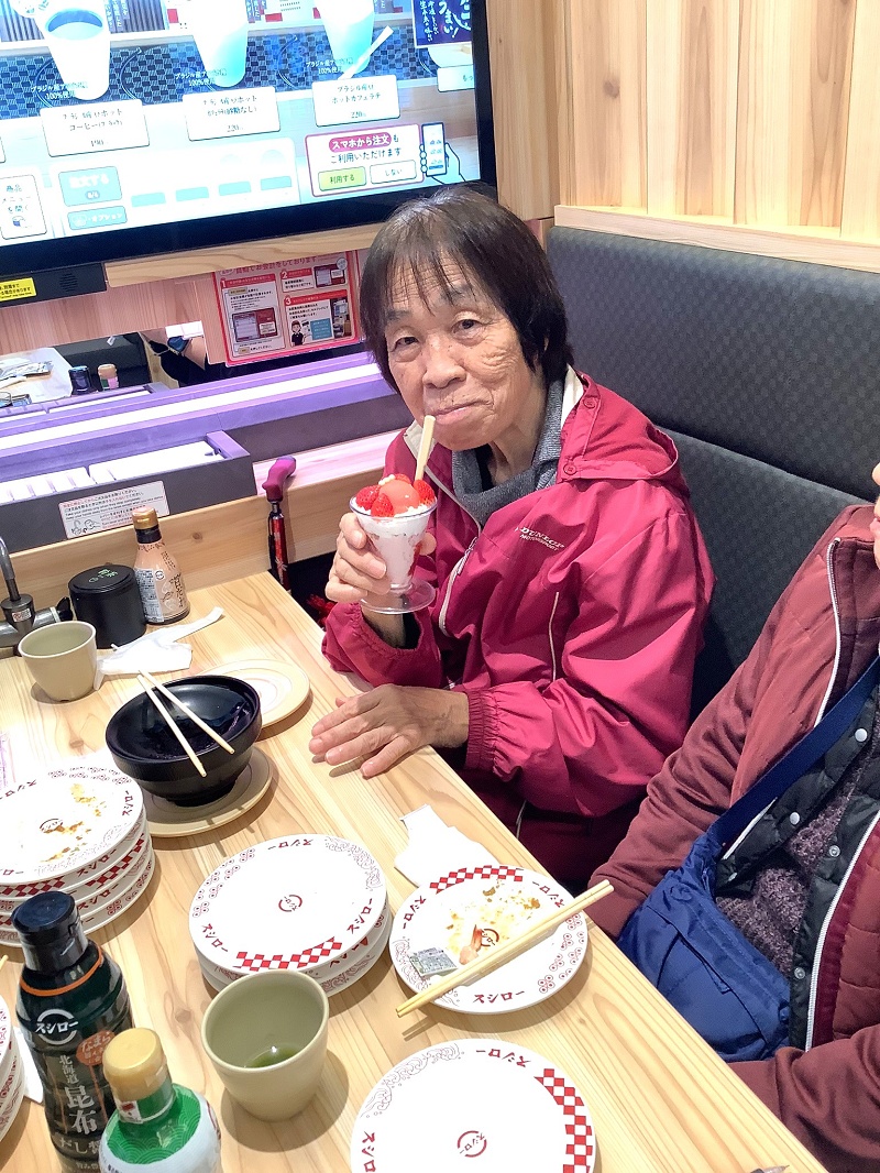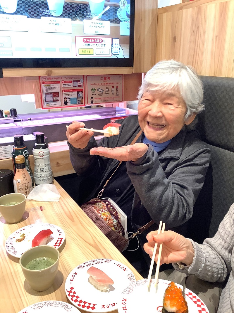 本日は外食レクリエーションで、皆さんと一緒にスシローへ行ってきました。